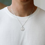 Solid sterling silver St. Christopher medallion, available with a choice of chain lengths.