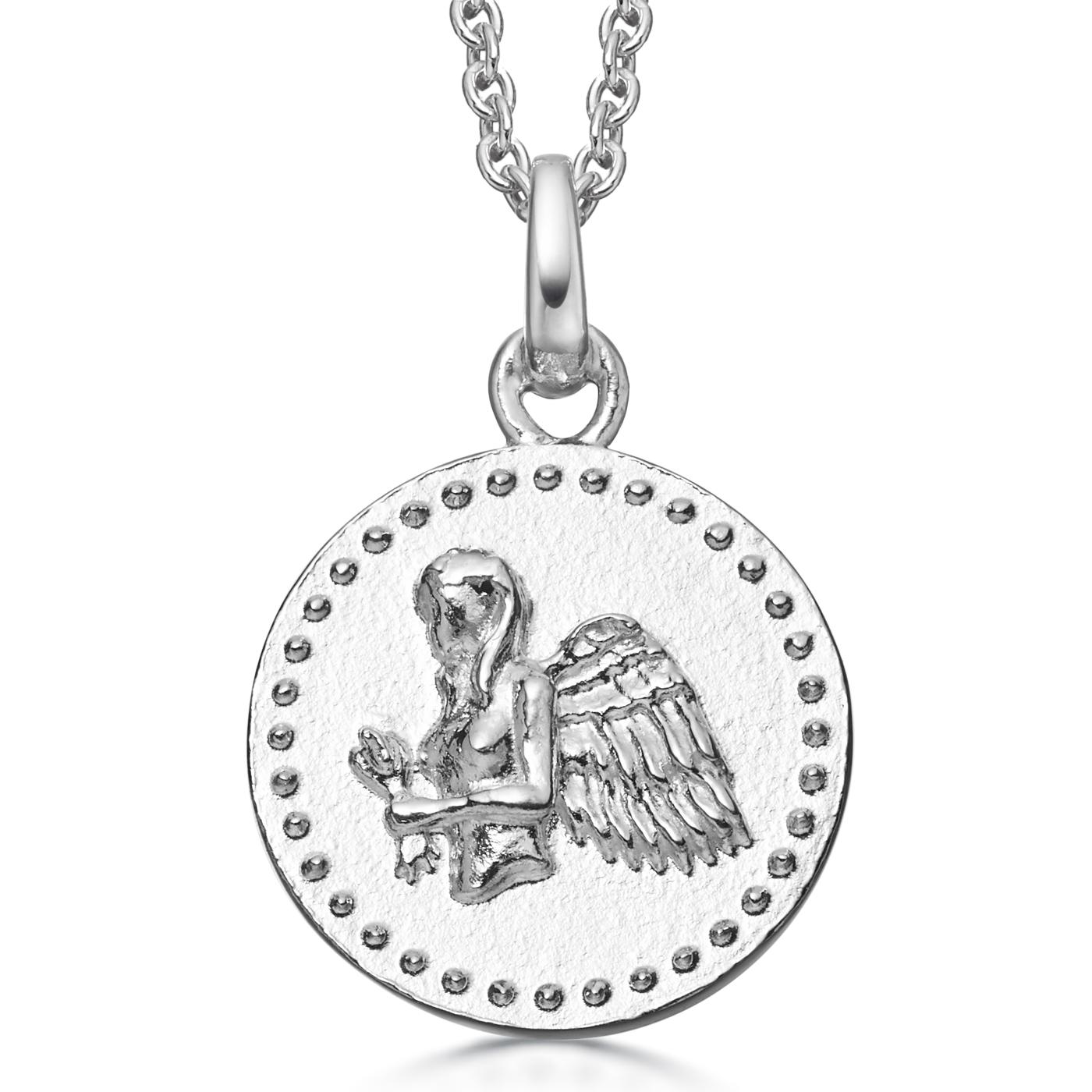 Sterling silver zodiac pendant with a tactile beaded border and raised star sign symbol.
