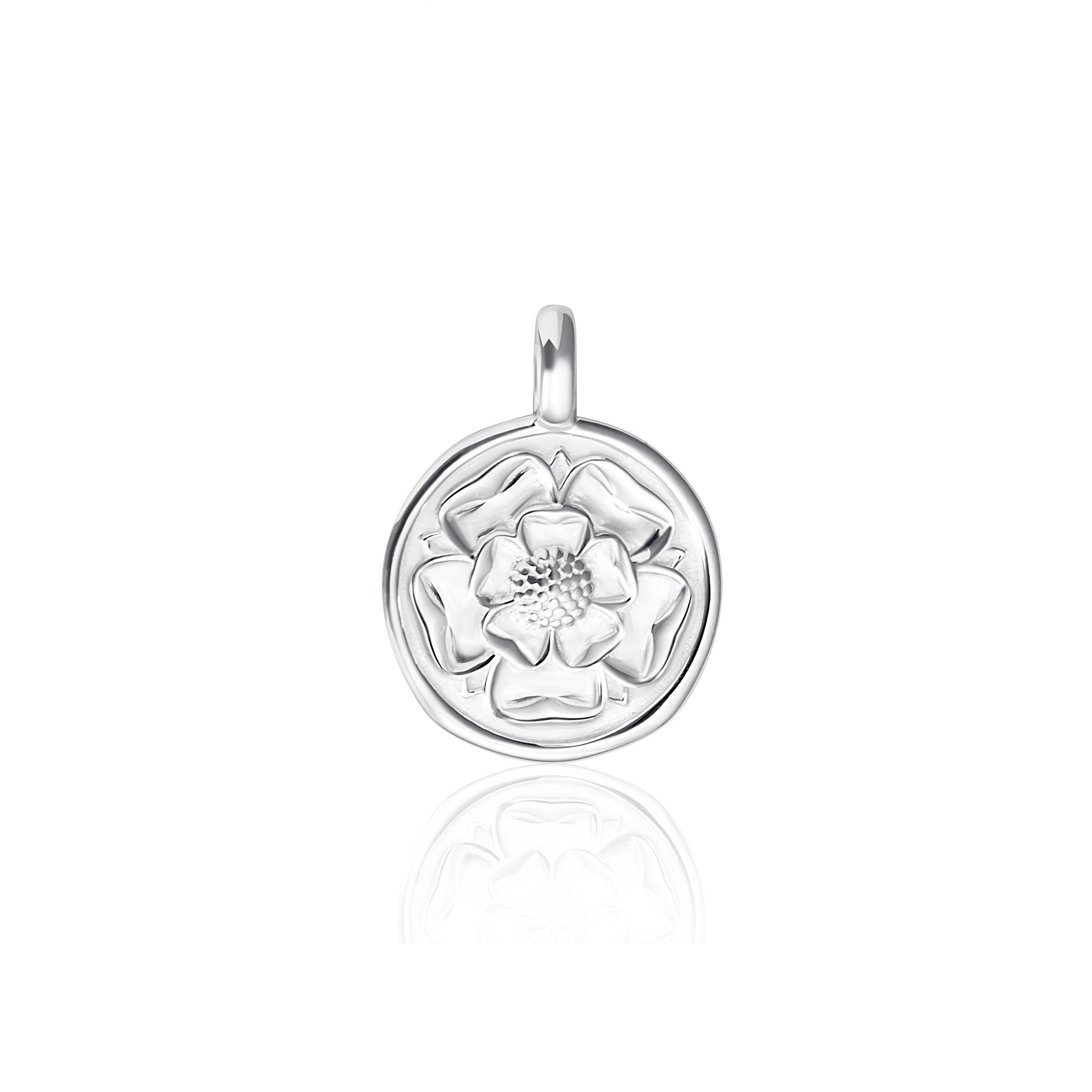 The sterling silver Tudor rose (sometimes called the Union rose) is the traditional floral heraldic emblem of England and takes its name and origins from the House of Tudor, which united the House of Lancaster and the House of York.