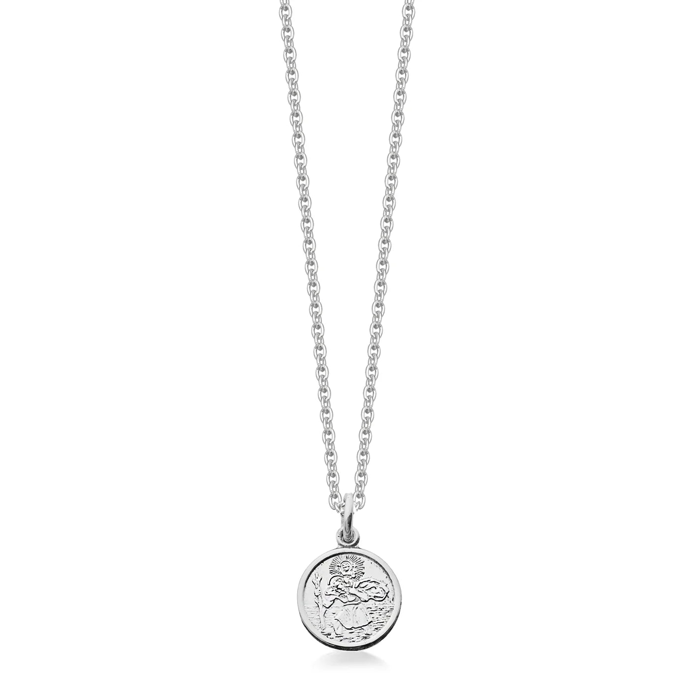 This sterling silver St. Christopher pendant measures 10mm in diameter and is suitable for children or adults who prefer a smaller size.