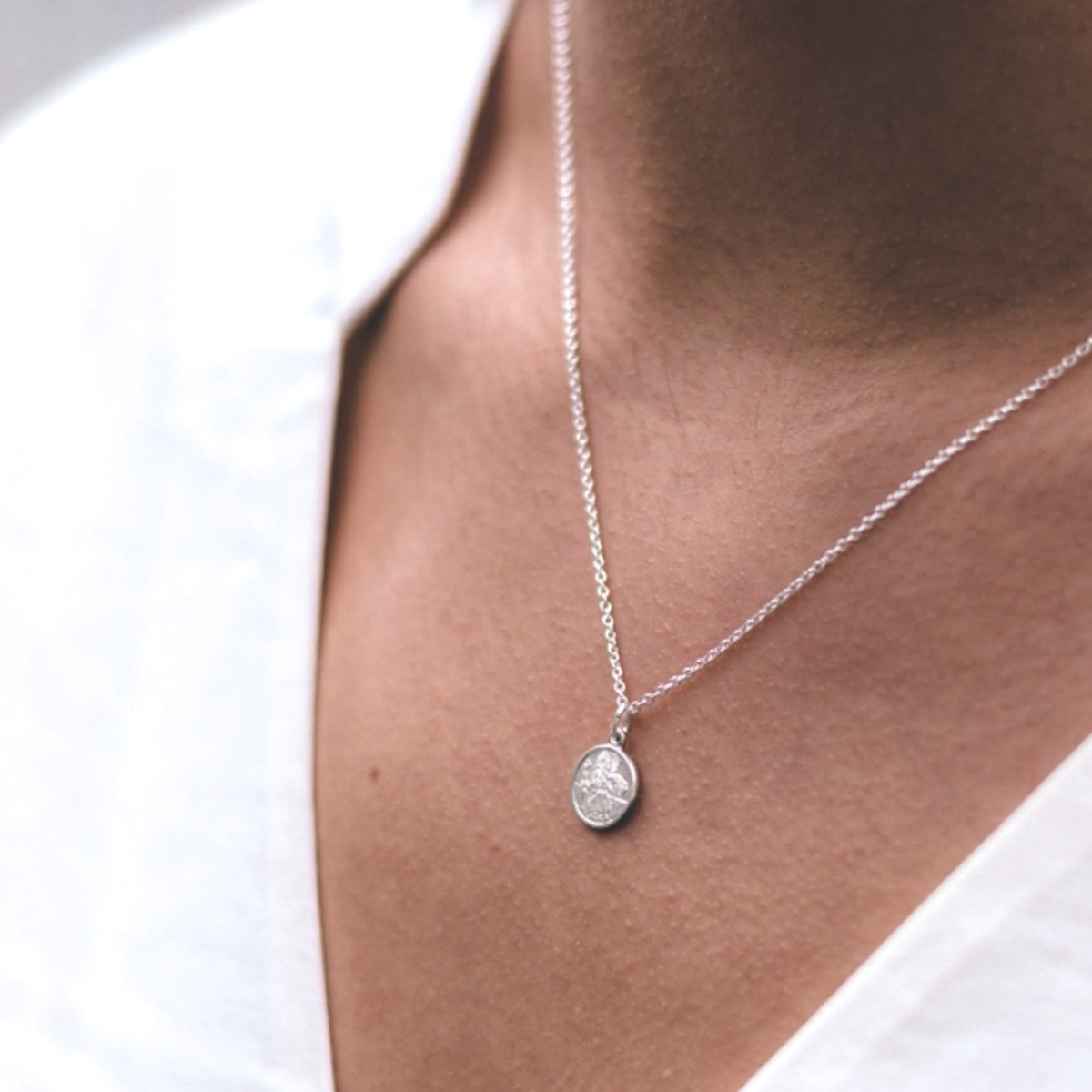 Crafted from solid 925 sterling silver with a polished finish. Supplied with a 13-15 inch sterling silver trace chain, with other lengths available.