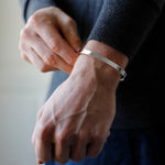 Handmade sterling silver bracelet with a rounded inside for comfort and a flat outer face, available in a polished or matt finish.
