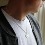 Available with a choice of silver chain lengths and styles, suitable for both men and women. Longer lengths are recommended for men.