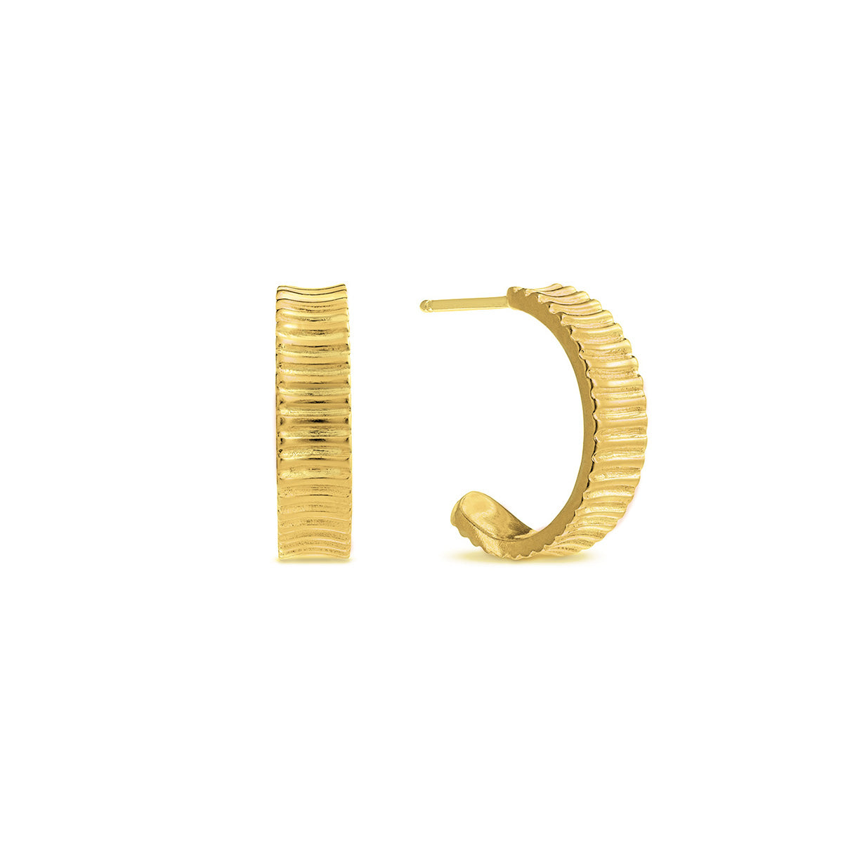 18ct gold-plated sterling silver half hoop earrings with ridged detailing.