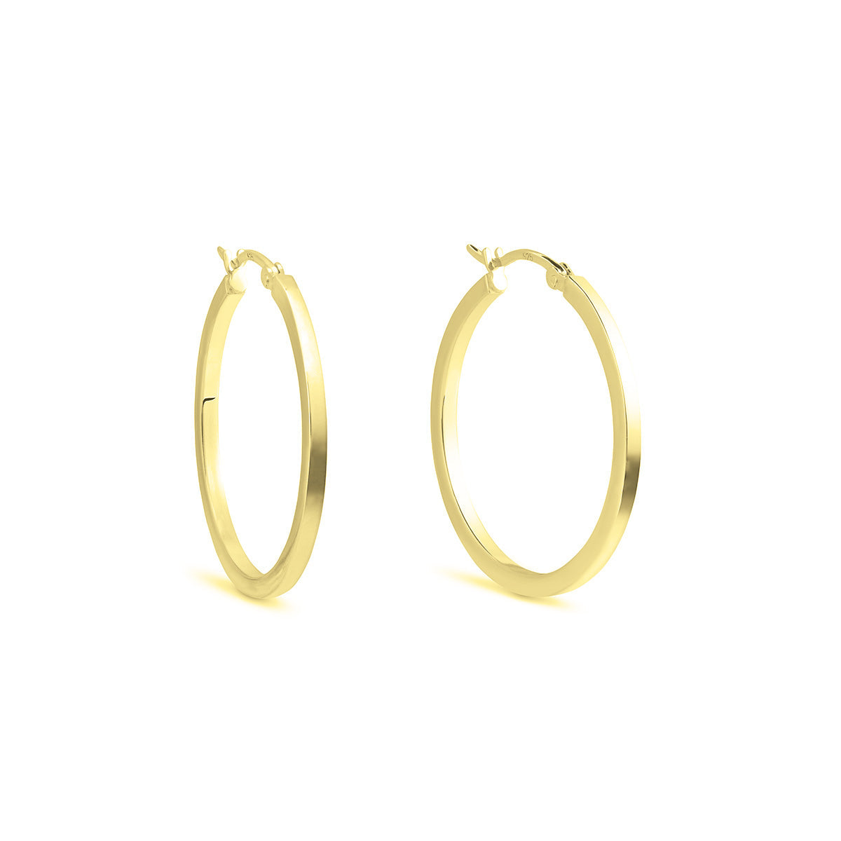 Square-profile hoop earrings made from solid sterling silver and plated with 18ct yellow gold. Available in three sizes.