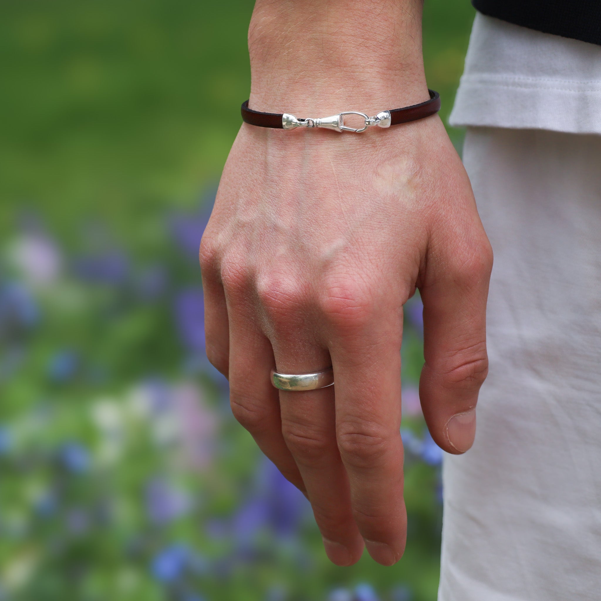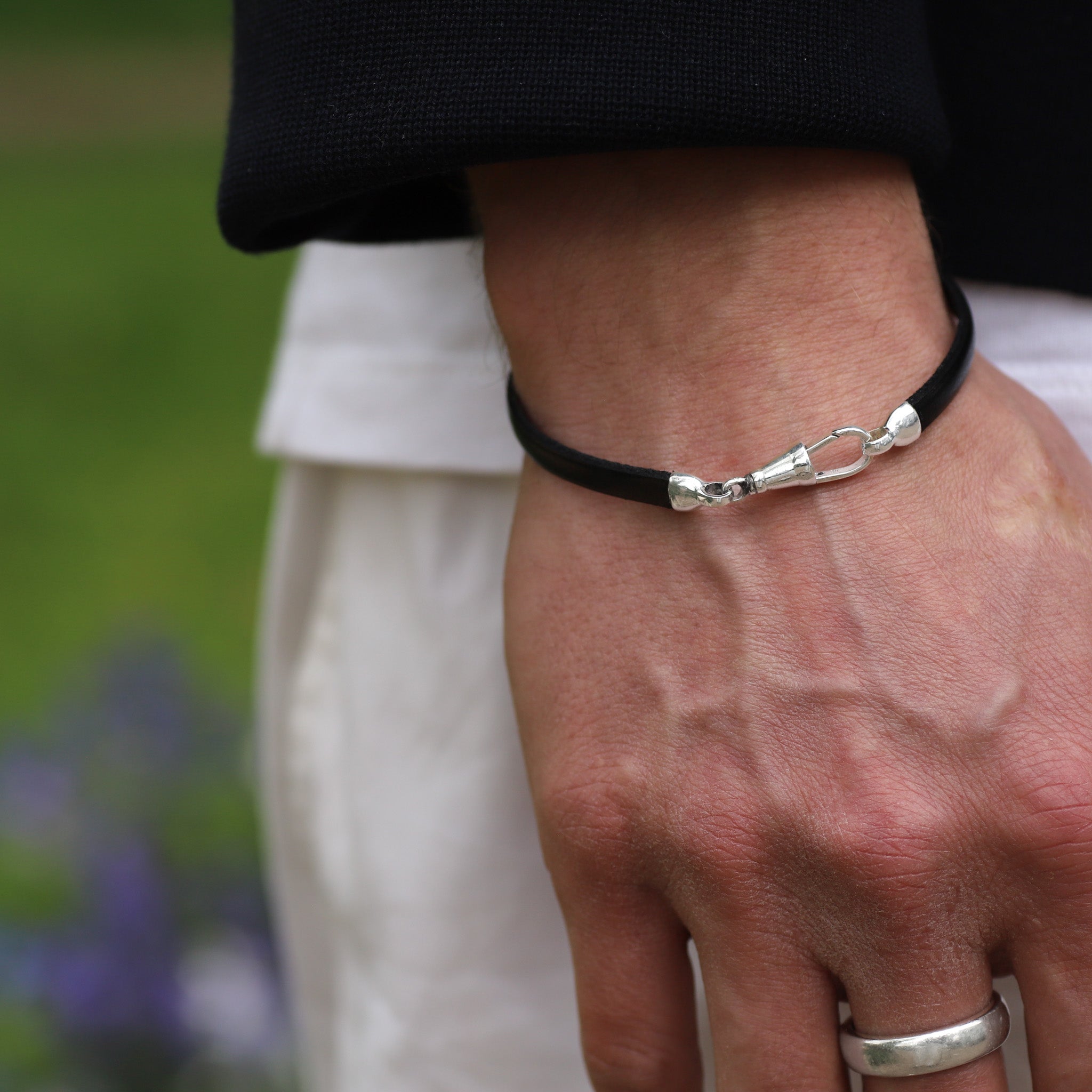 Shop our collection of leather and sterling silver bracelets. Pairing high-quality leather with sterling silver accents and robust clasps. Each bracelet is sent direct from our workshop and presented in a Hersey & Son gift box.
