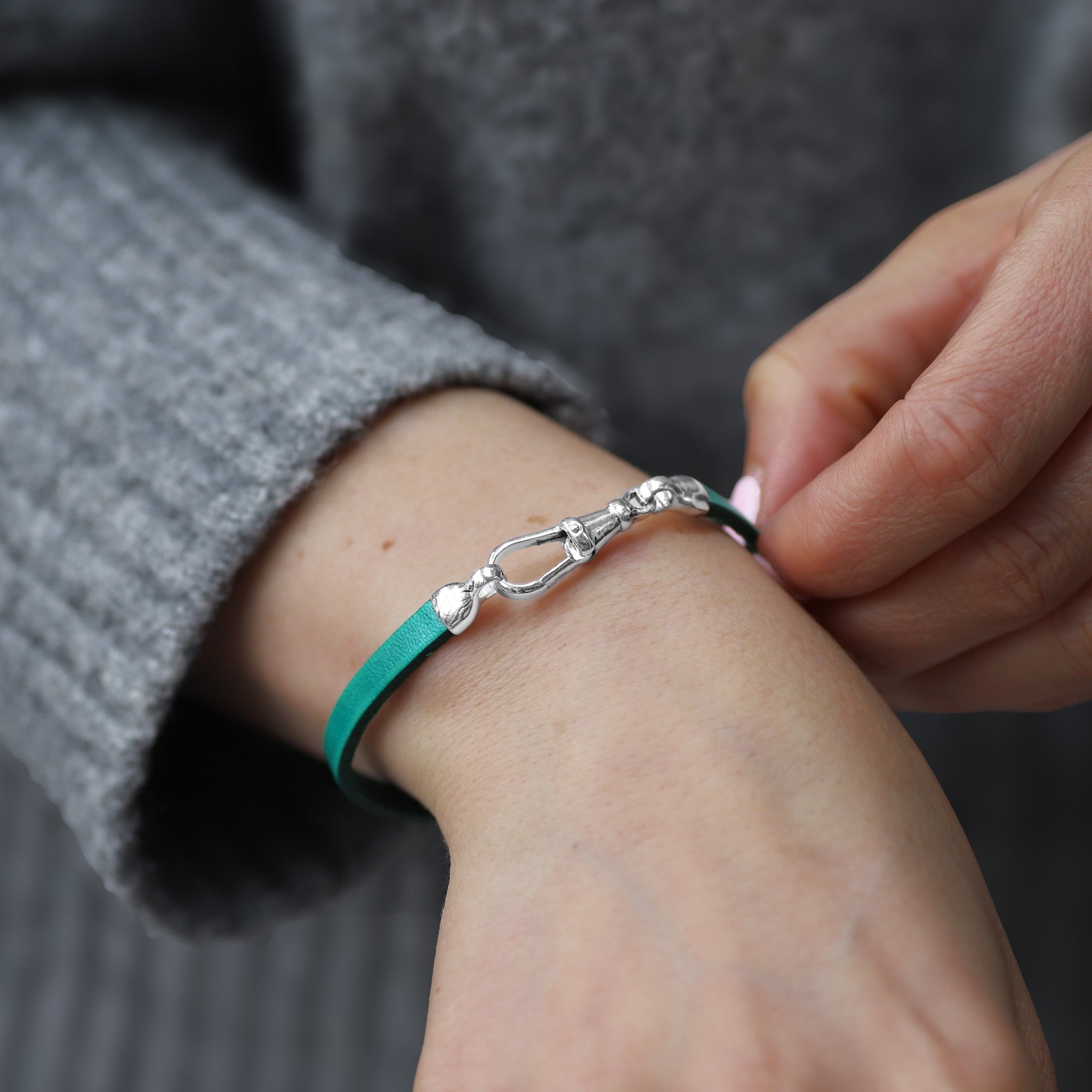 Sterling Silver & Green Leather Bracelet - Albert Clasp
