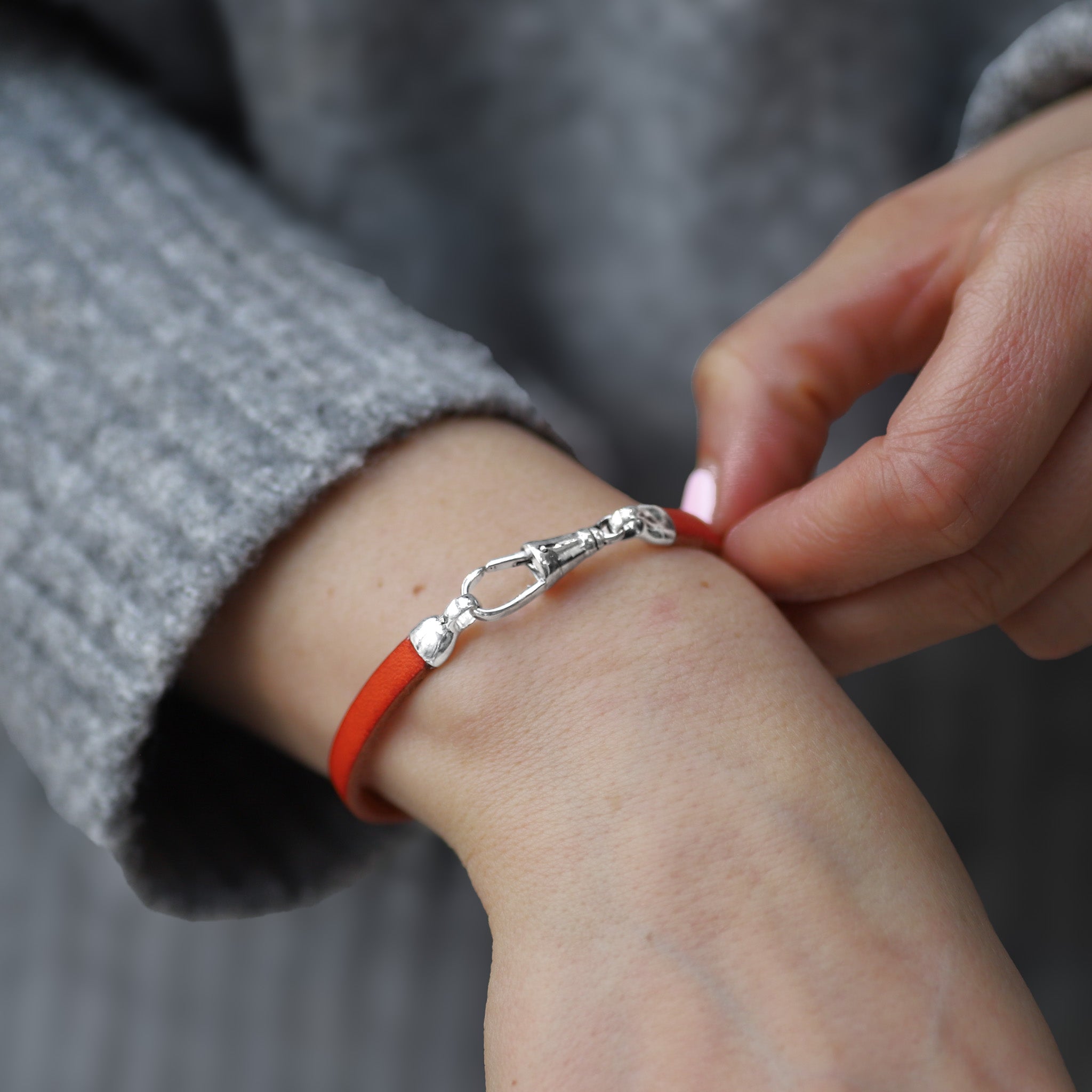 Sterling Silver & Orange Leather Bracelet - Albert Clasp