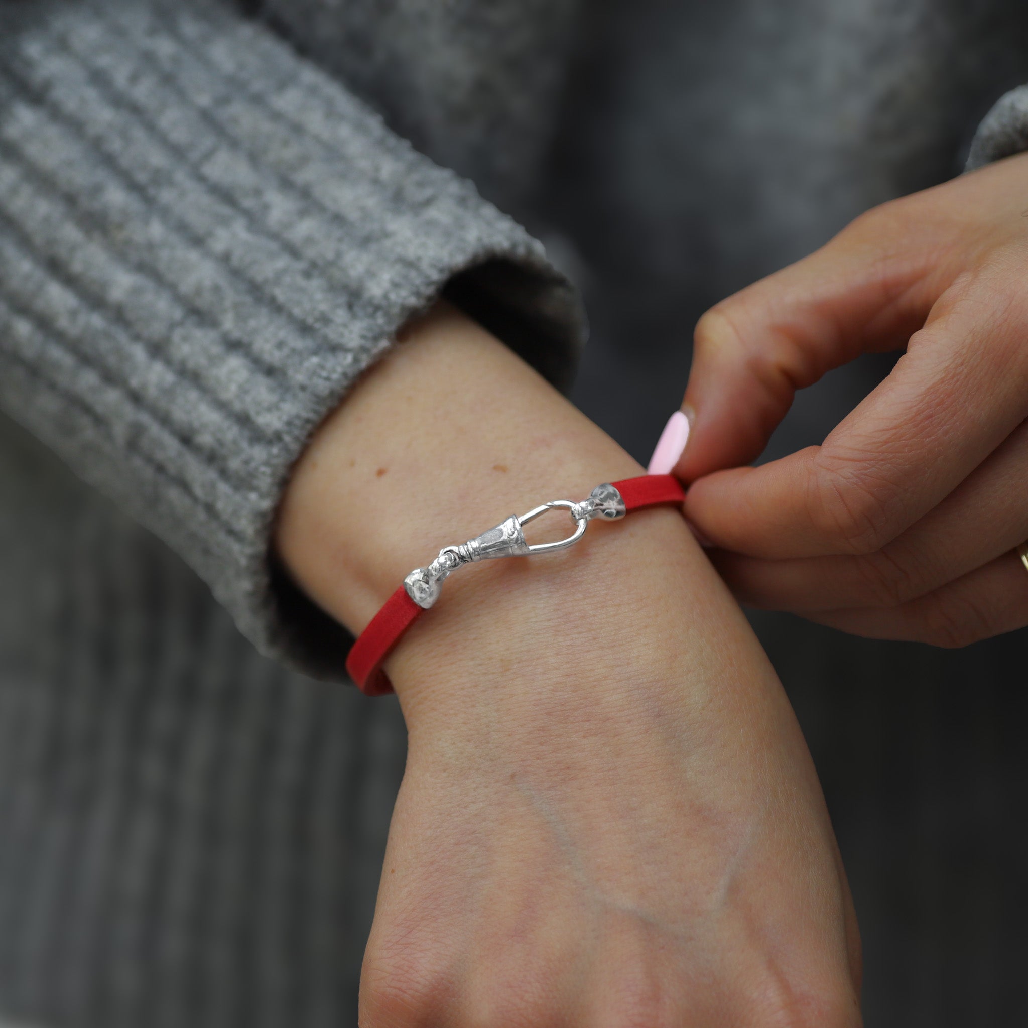 Sterling Silver & Red Leather Bracelet - Albert Clasp