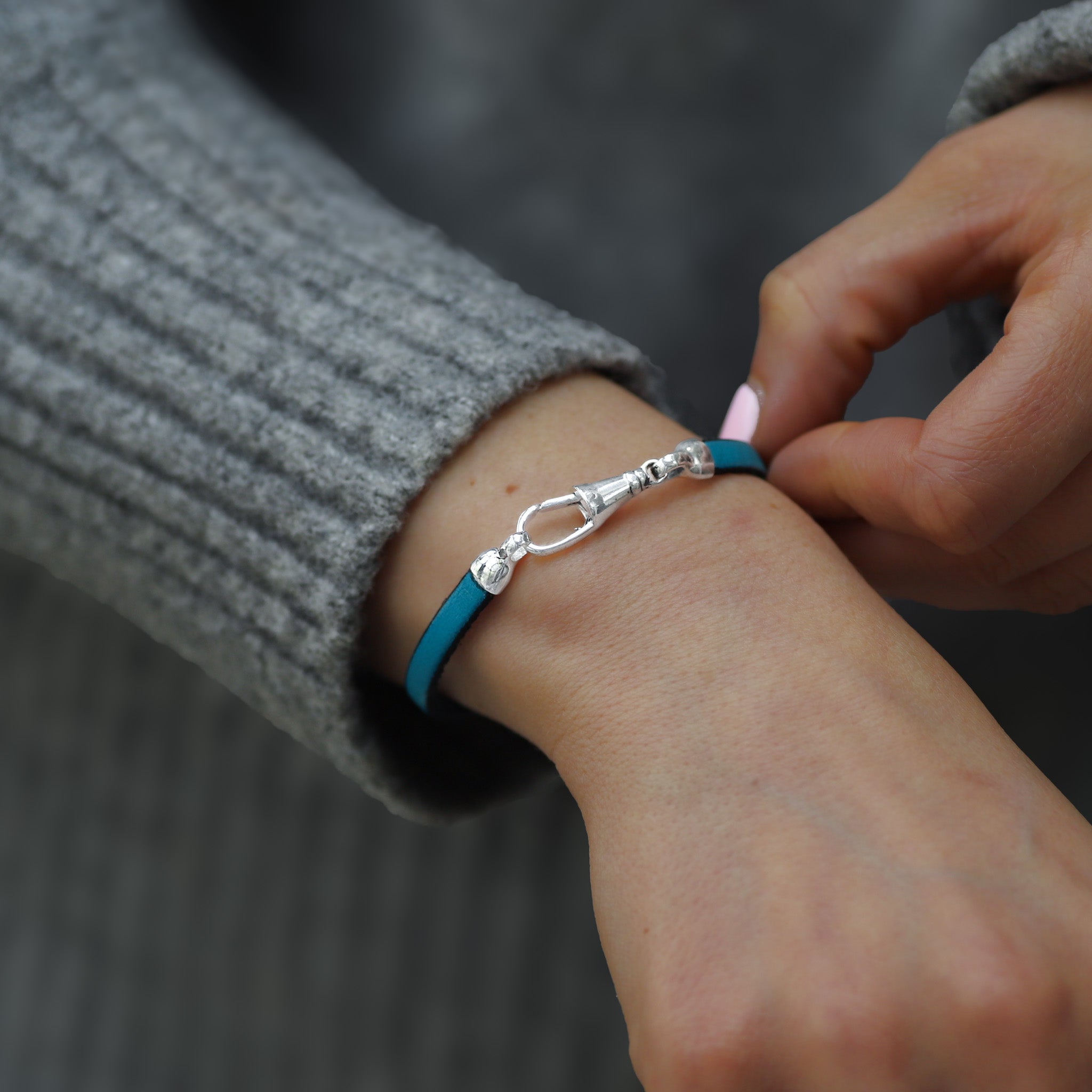 Sterling Silver & Blue Leather Bracelet - Albert Clasp