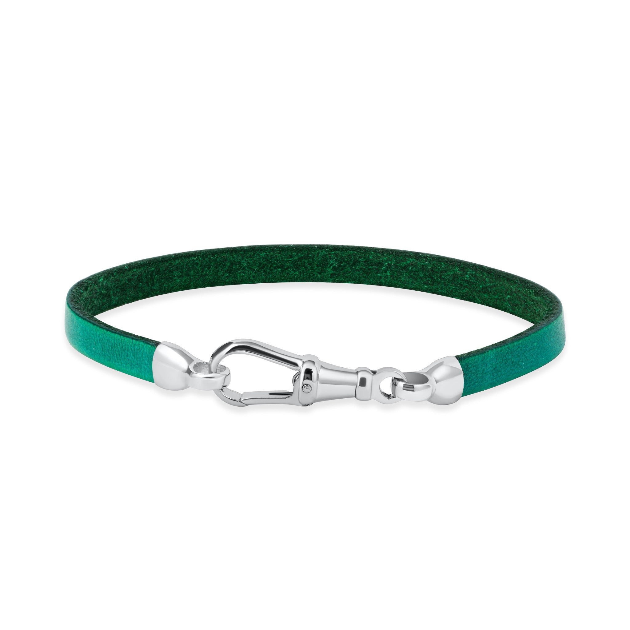 Sterling Silver & Green Leather Bracelet - Albert Clasp
