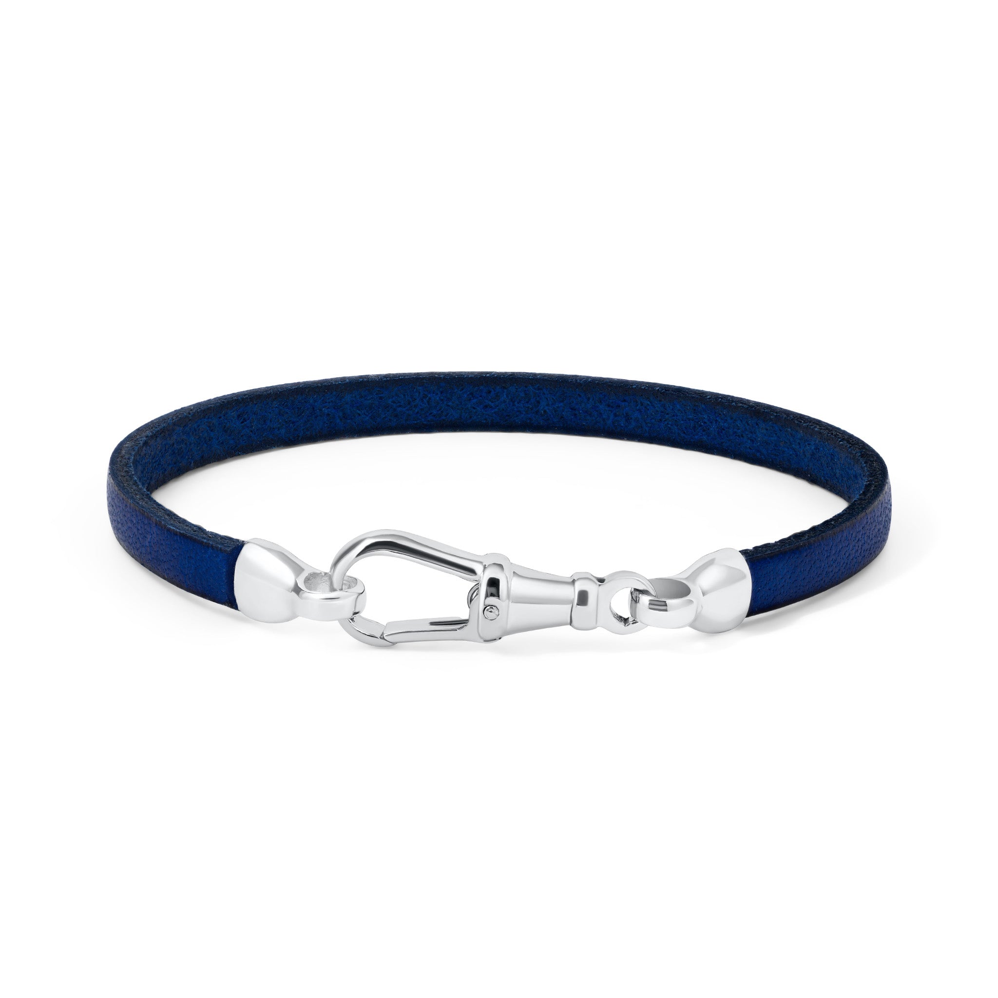 Sterling Silver & Blue Leather Bracelet - Albert Clasp