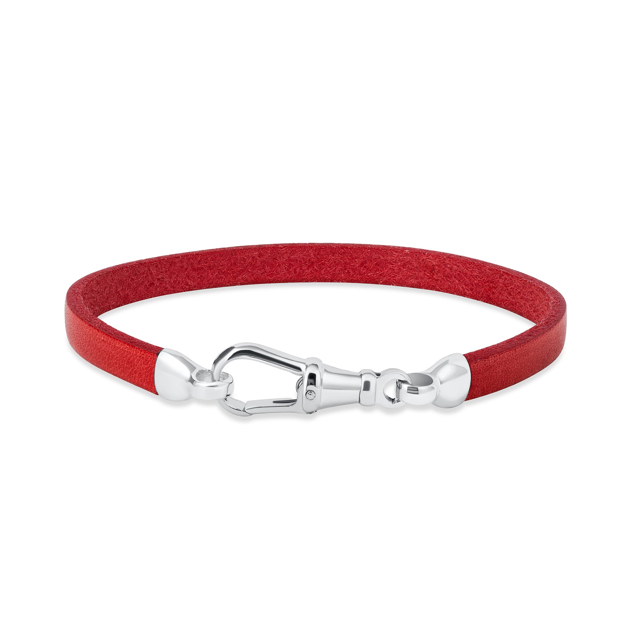 Sterling Silver & Red Leather Bracelet - Albert Clasp