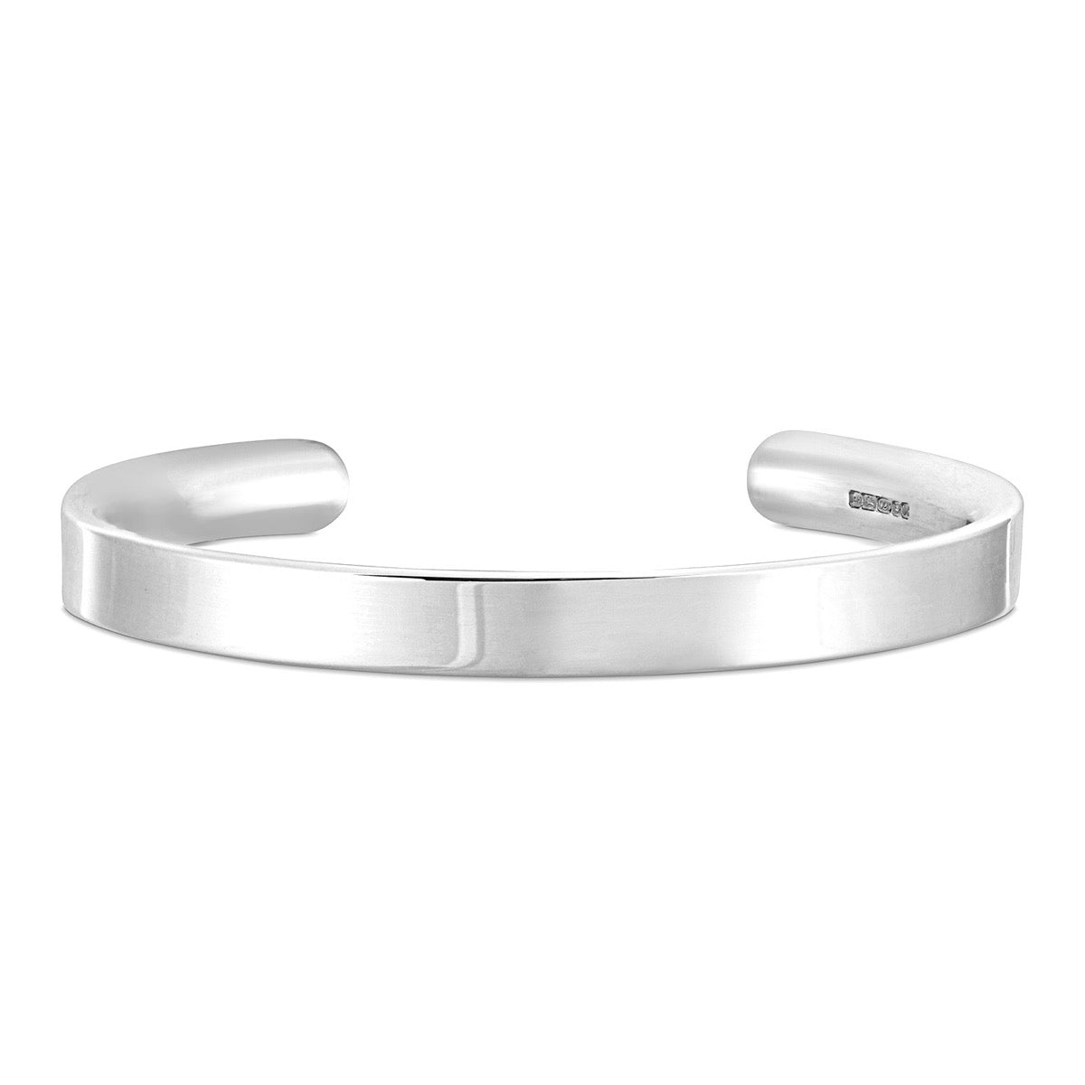 Deluxe silver bracelet with a flat exterior and rounded interior for comfort, handcrafted by Hersey & Son Silversmiths in London.