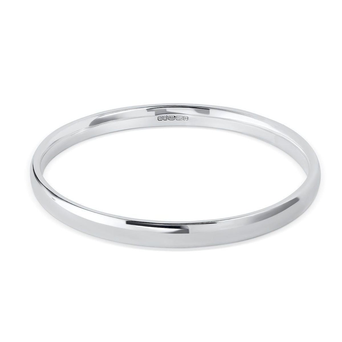 Handmade sterling silver bangle measuring 6mm × 3mm. Available in three sizes to fit most hands.