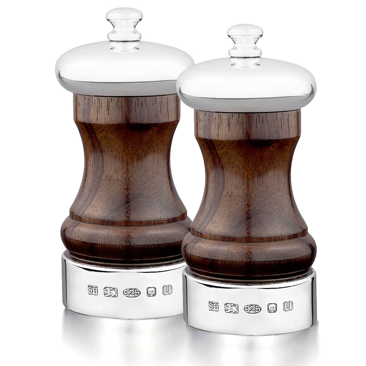 Classic capstan-shaped mill handcrafted in our workshops with a silver top, silver band, and quality grinding mechanism.