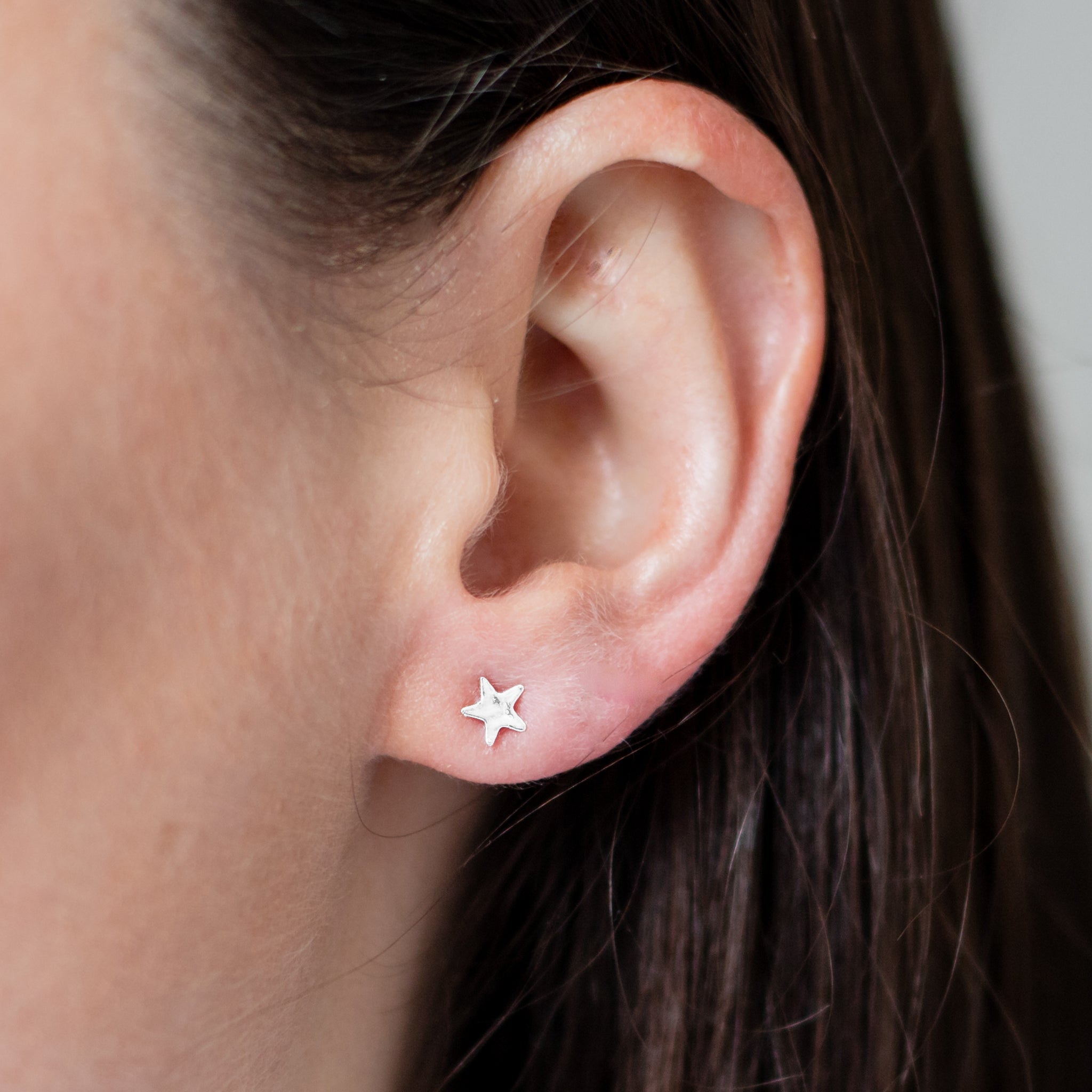 Sterling Silver Molten Mini Star Studs