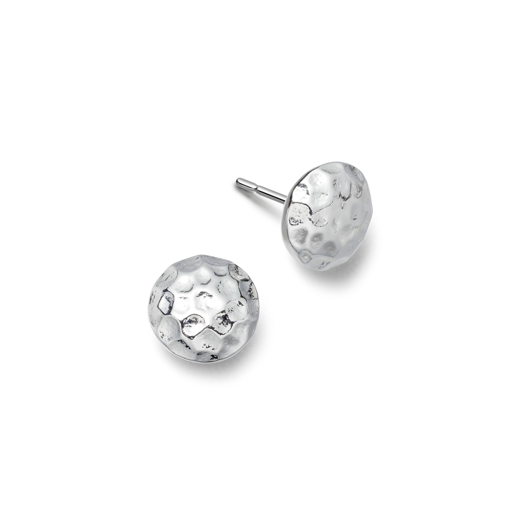 Sterling silver round studs with a hammered finish for a textured, contemporary look.