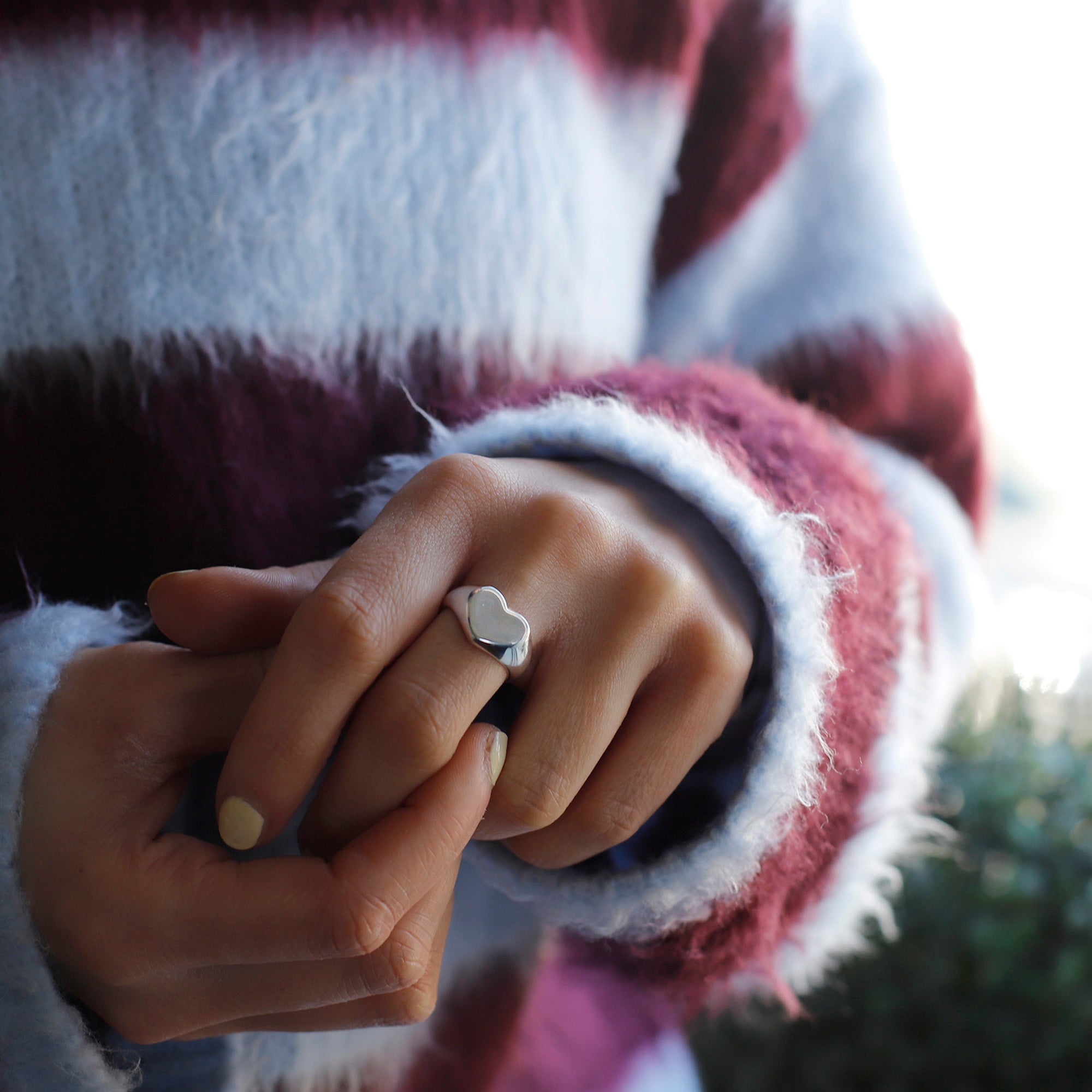 Solid 925 sterling silver heart-shaped signet ring with a chunky polished finish.