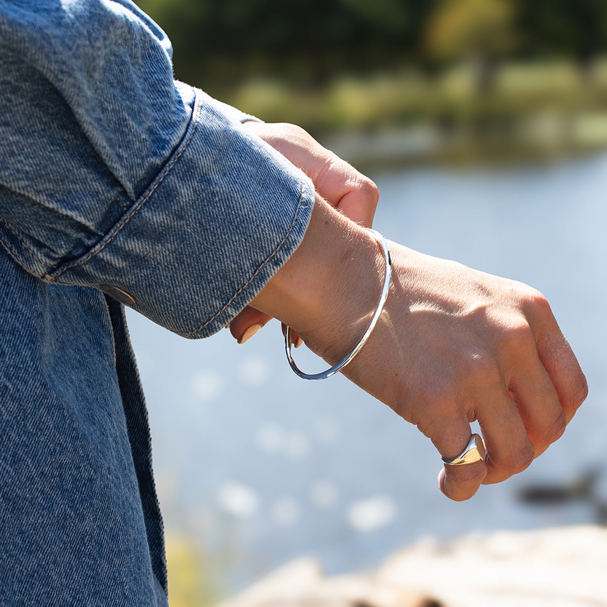 Shop the full collection of women's sterling silver jewellery. Featuring classic necklaces, bracelets, bangles, and earrings, each piece is crafted with care in our workshop and finished to a high standard. An excellent selection of everyday silver for women, presented in a Hersey & Son gift box. Many pieces can be personalised, courtesy of our on-site engravers.