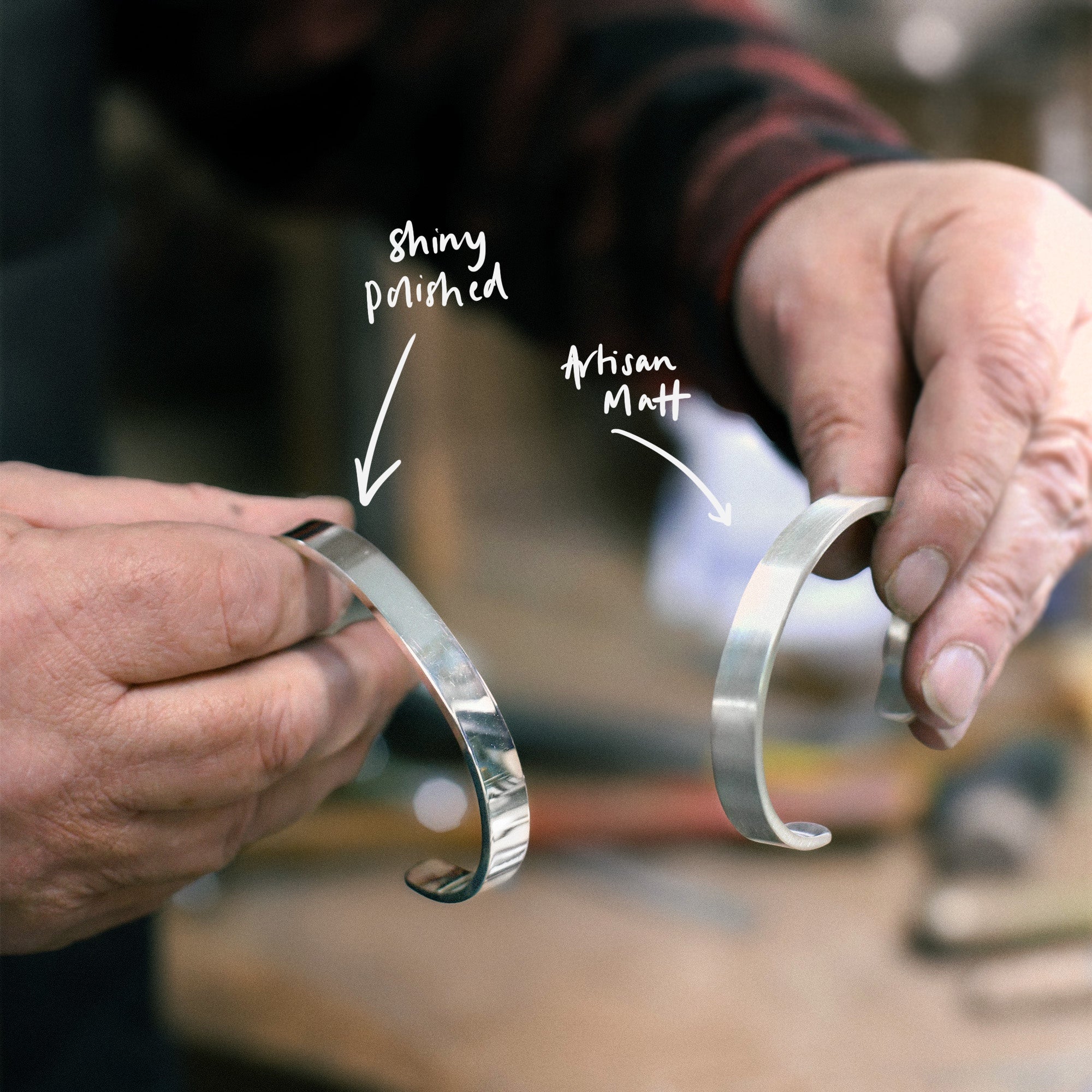 Deluxe silver bracelet with a flat exterior and rounded interior for comfort, handcrafted by Hersey & Son Silversmiths in London.