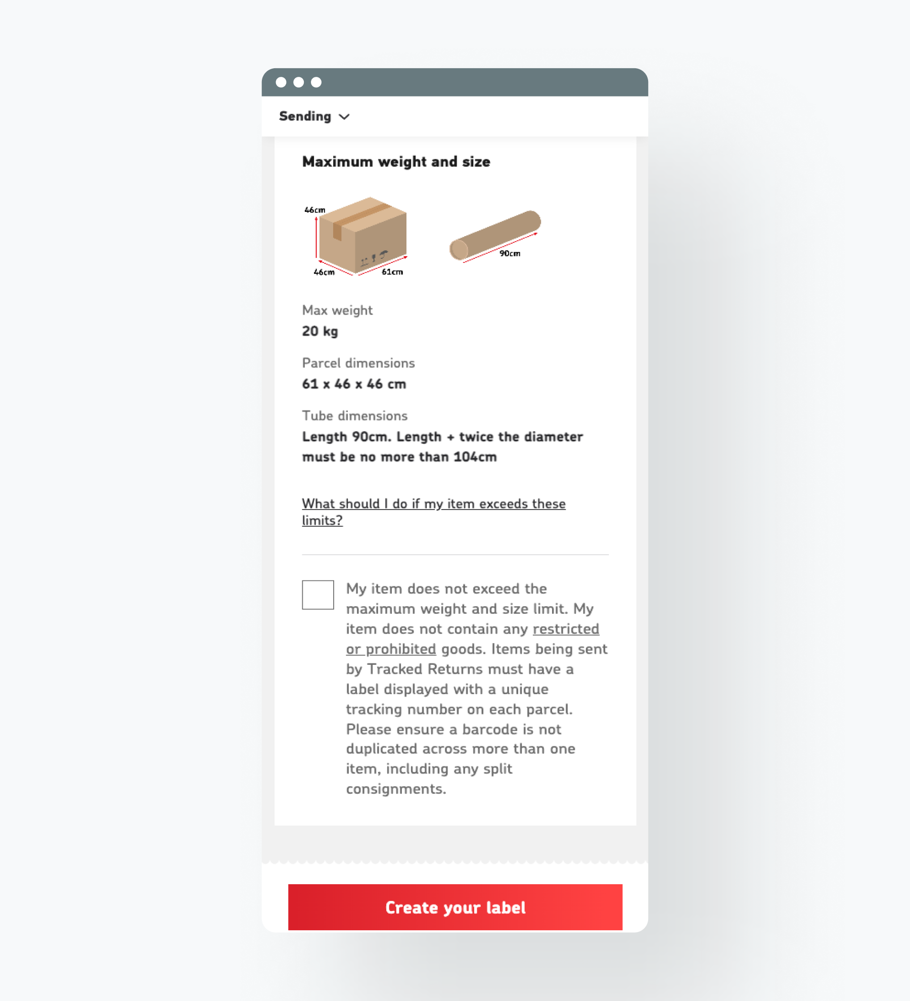 - Confirm your parcel does not exceed the maximum weight and size limit. If this does not apply, please contact us.