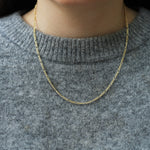 The chain is made from sterling silver, with a purity of 925 parts per thousand and 2 micron 18ct gold plating with a modern, soft satin finish.