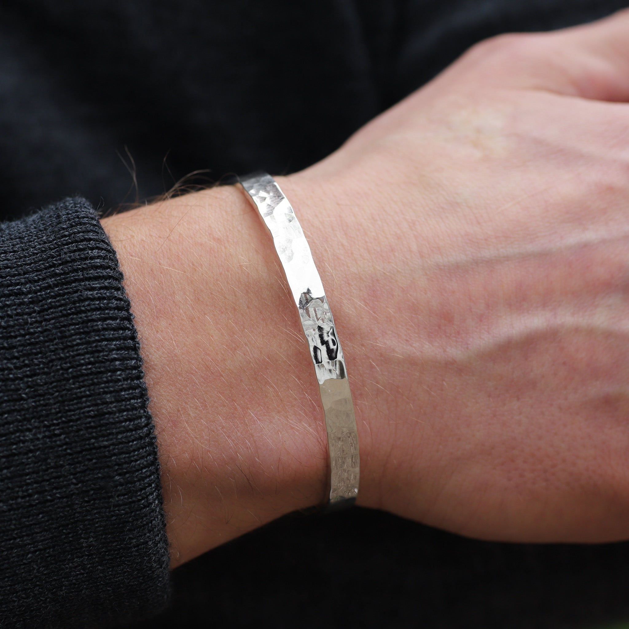 - Style: Hammered Silver Bracelet