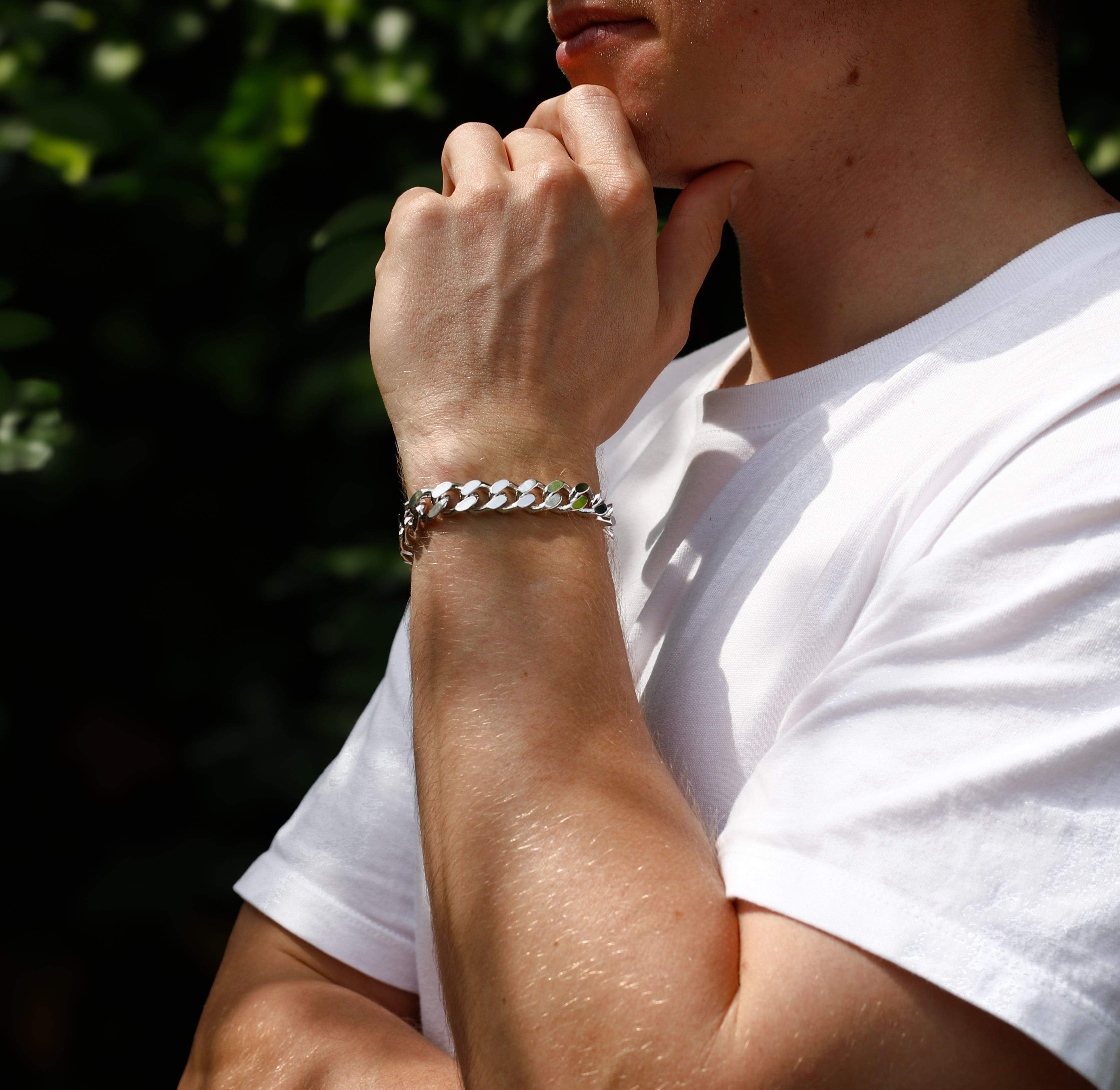 Mens Silver Heavy Curb Chain Bracelet - hersey-and-son