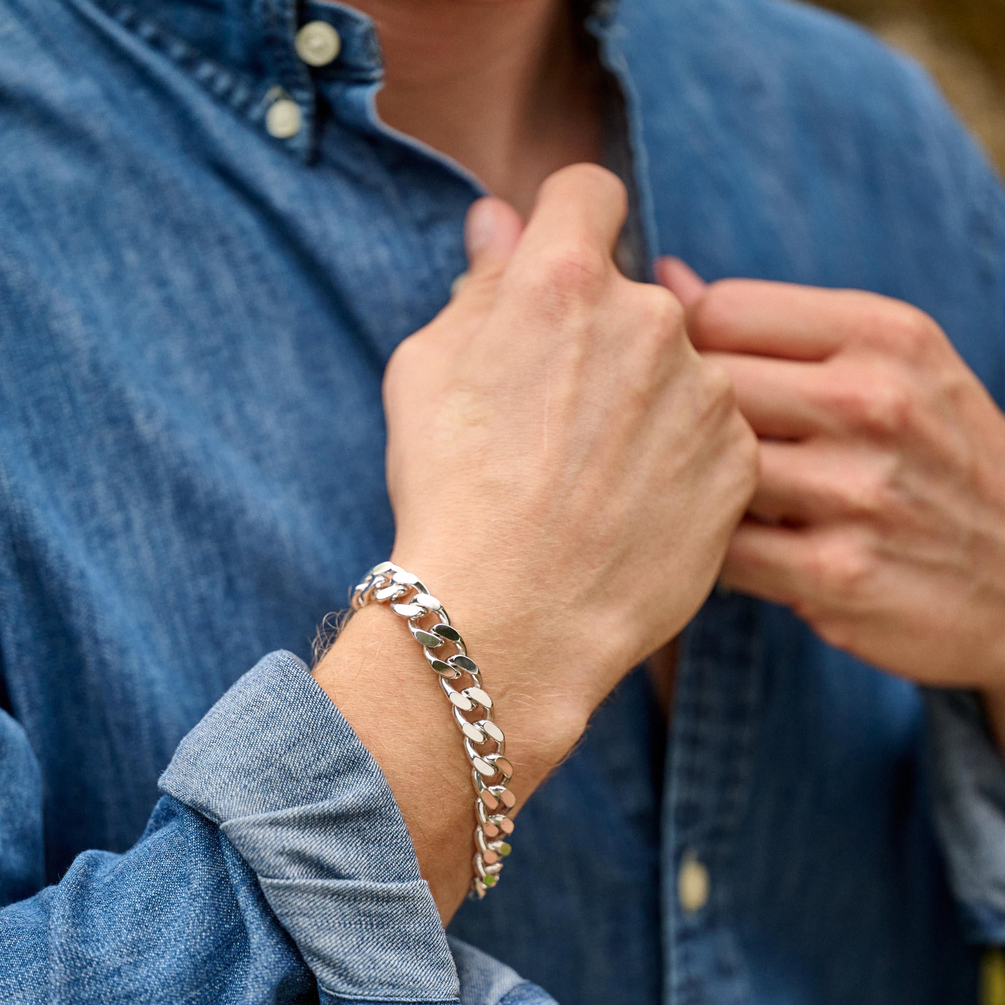 Solid sterling silver bracelet with polished finish and secure lobster clasp. Handcrafted in our workshop.