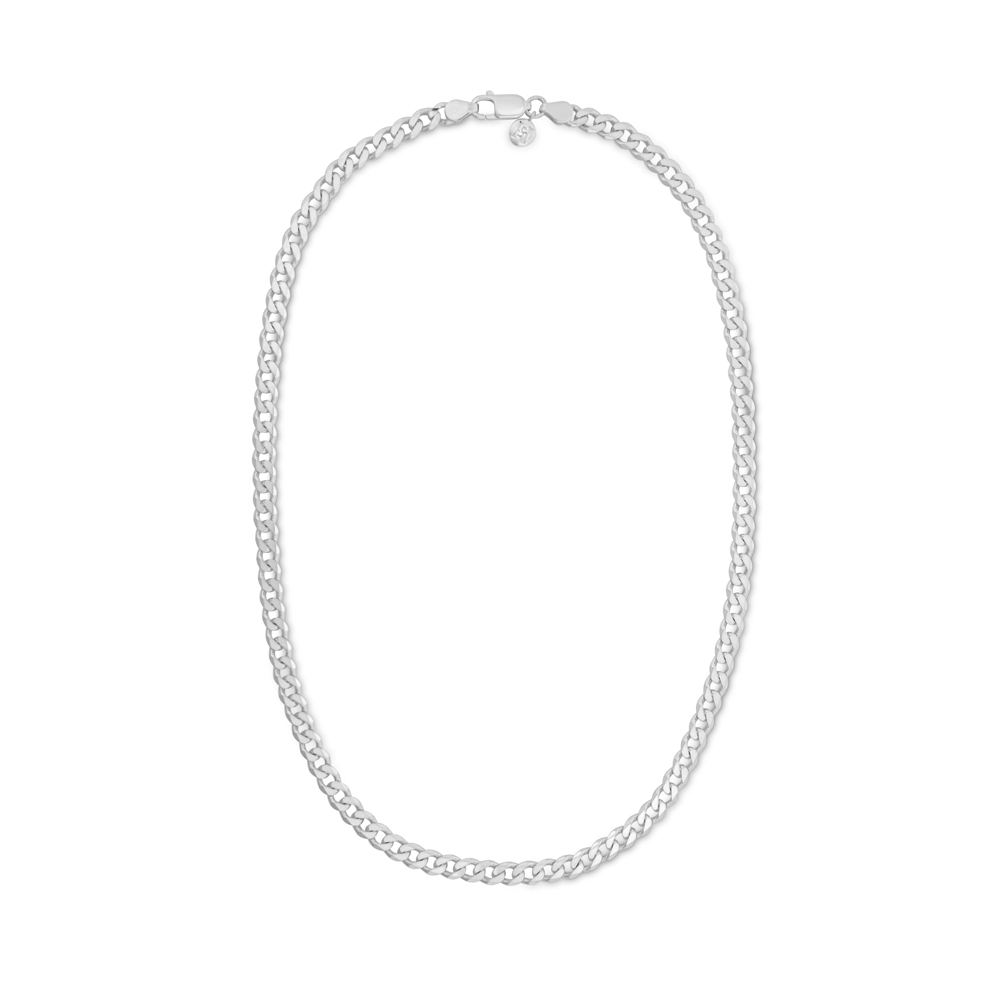 This classic sterling silver curb chain features interlocking links with a flat profile, measuring 6mm wide.