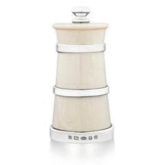 Butter churn style salt mill with durable ivory alternative, handmade in our workshop.