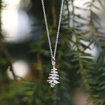 Three dimensional Christmas tree pendant that features a little star topper and has been cast in solid sterling silver.