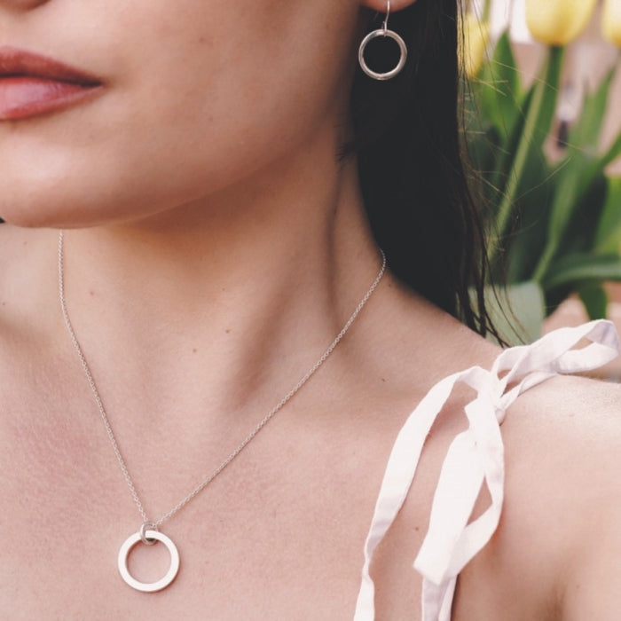 These earrings have a simple yet striking design. Expertly handcrafted in our workshop, they feature handmade silver hoops, creating a look that is both modern and timeless.