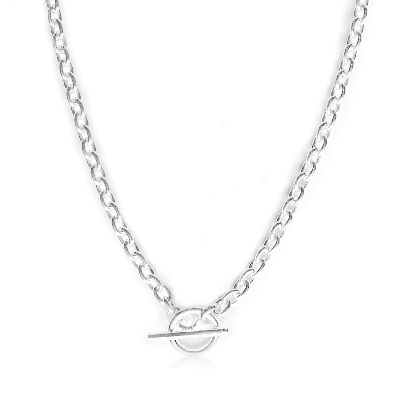 Sterling silver oval anchor cable chain necklace with a T-bar fastening, handmade in our workshops. The clasp can be worn at the back or styled as a feature at the front.